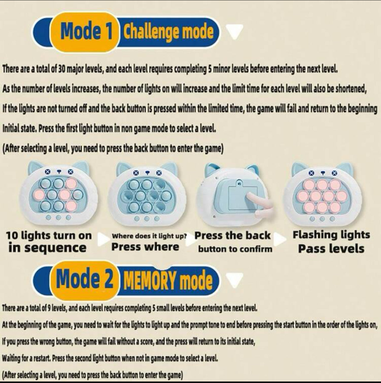 Press Play Speed Push-game Machine With Melodious Sound Effects, Cool Lighting. With Four Modes: Level Break, Memory, Scoring, And Multiplayer. It Can Be Used For Memory Games