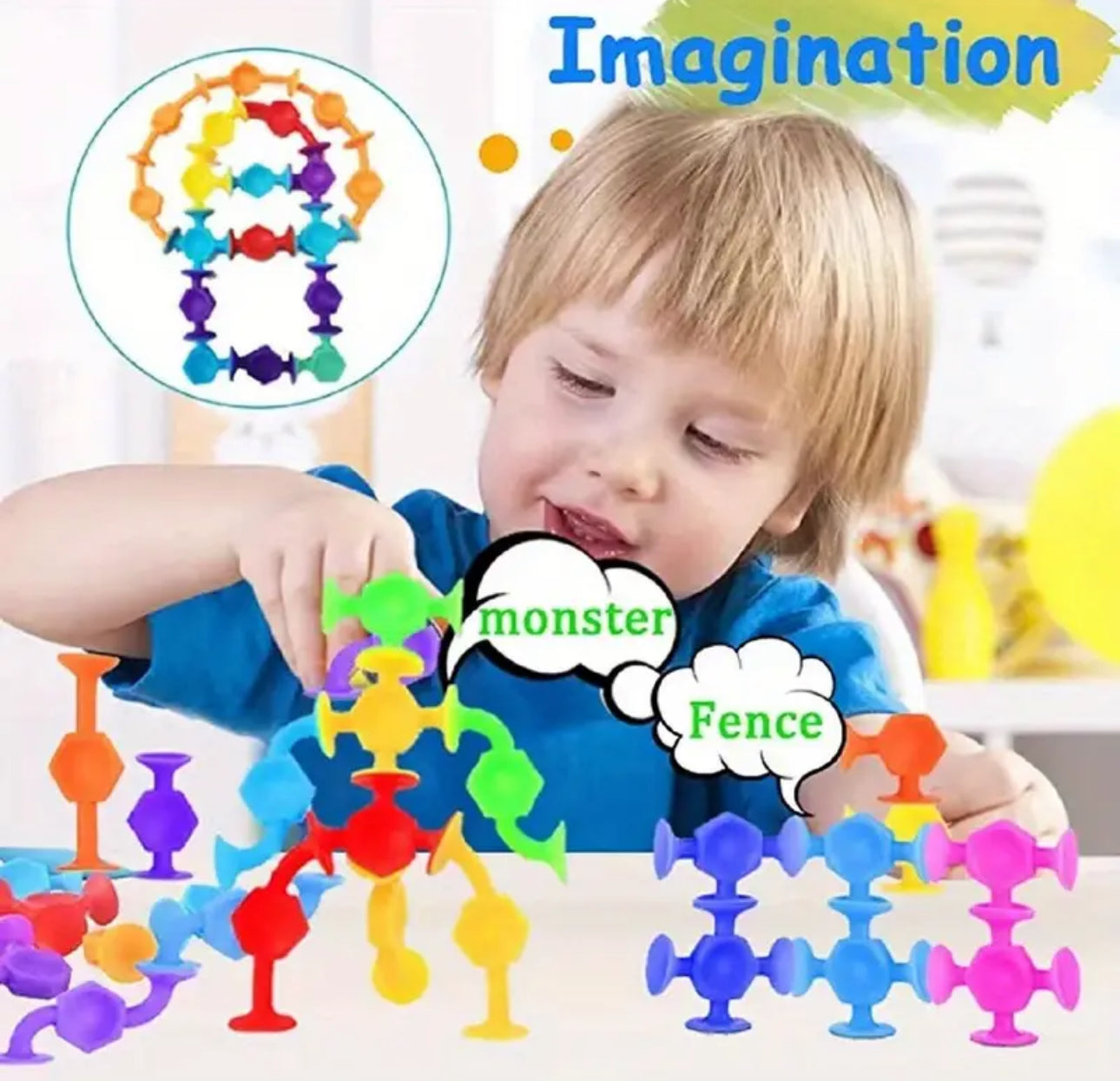19pcs/Set Suction Cup Toys, Bath Toys, Fidget Toys, Sucker Funny Toys Set, Travel Toys, Soft Silicone Construction,
