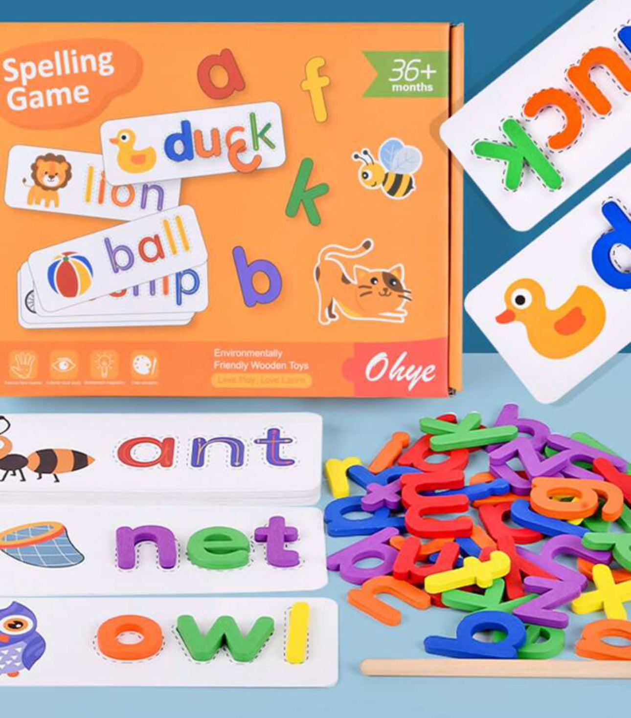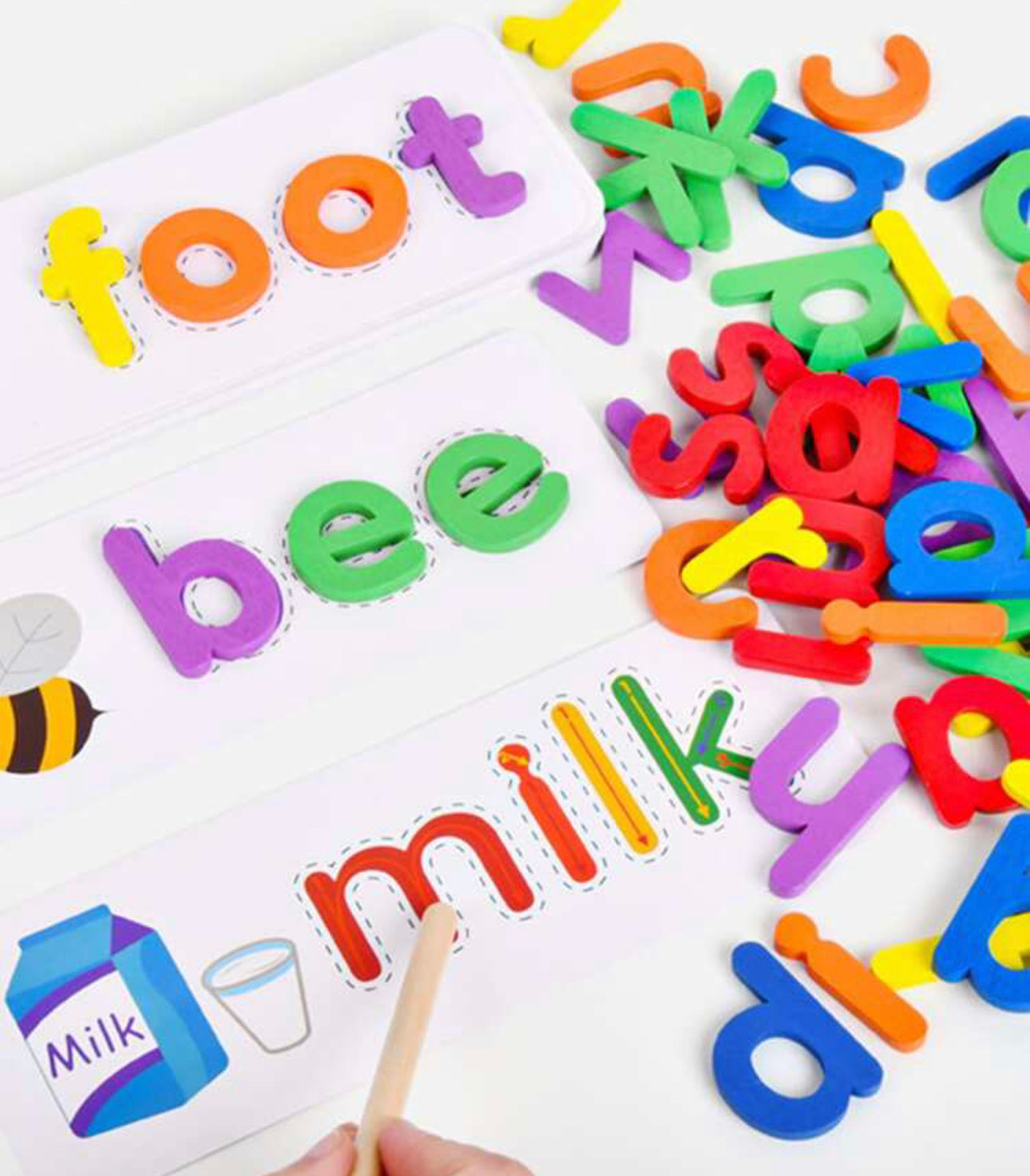52 Uds. Alfabeto inglés palabra ortográfica juguetes educativos de madera para niños-28 Uds. Tarjetas de aprendizaje y rompecabezas juegos Montessori