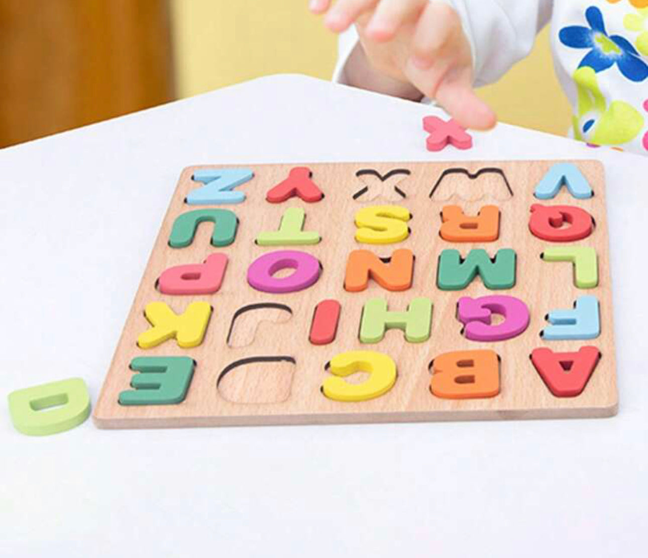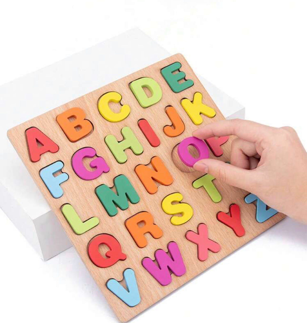 1 pieza tablero alfanumérico de madera con diseño de letras para niños
