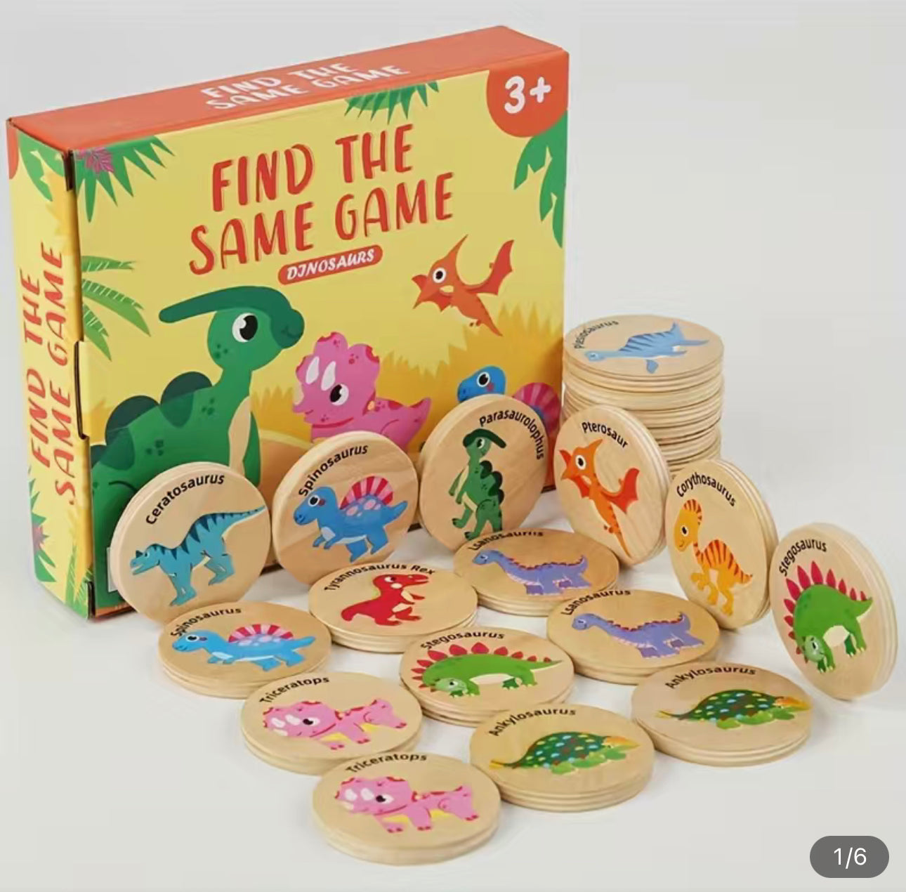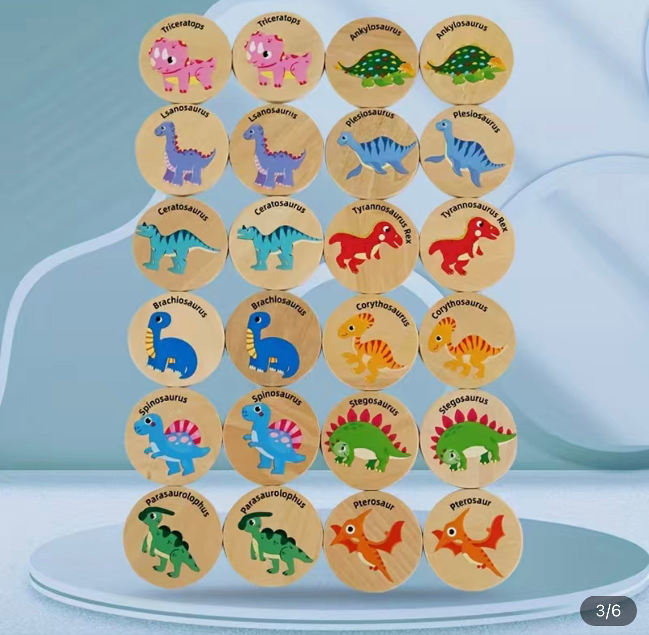 Juego de memoria de dinosaurios de madera: desarrolle habilidades de observación y rompecabezas con divertidos bloques de construcción