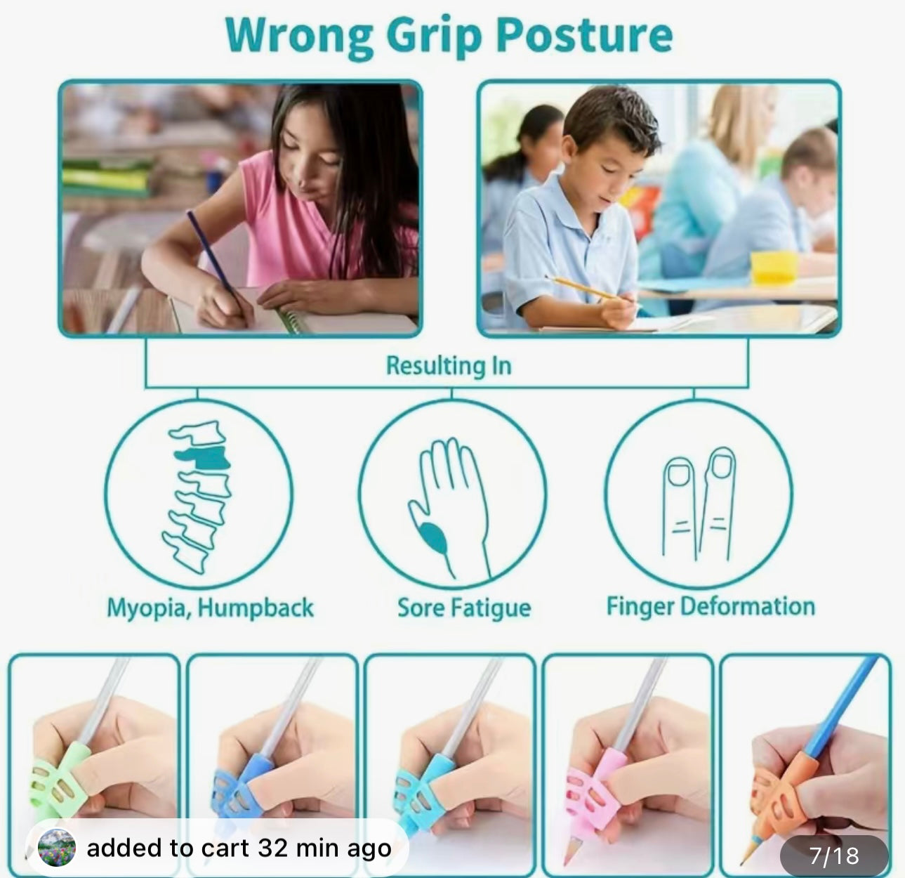 Herramienta de escritura de silicona para bebé, agarre con dos dedos para fácil corrección y práctica, 1 ud.