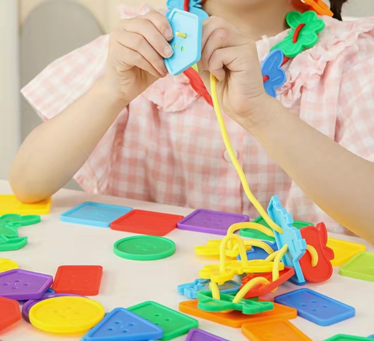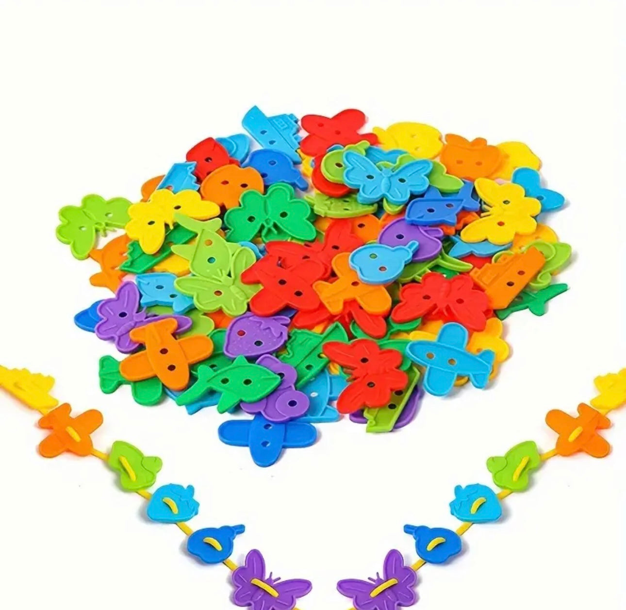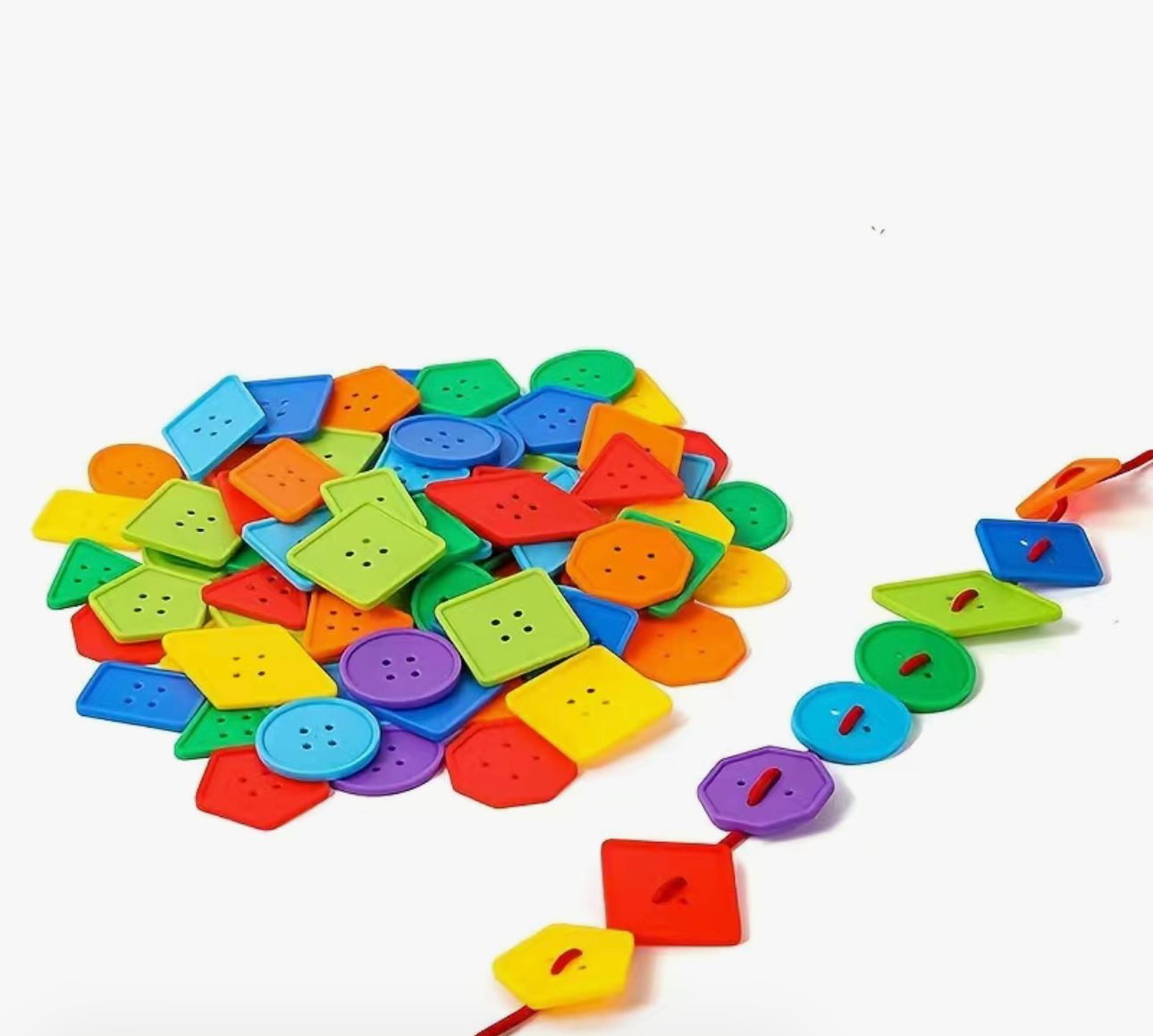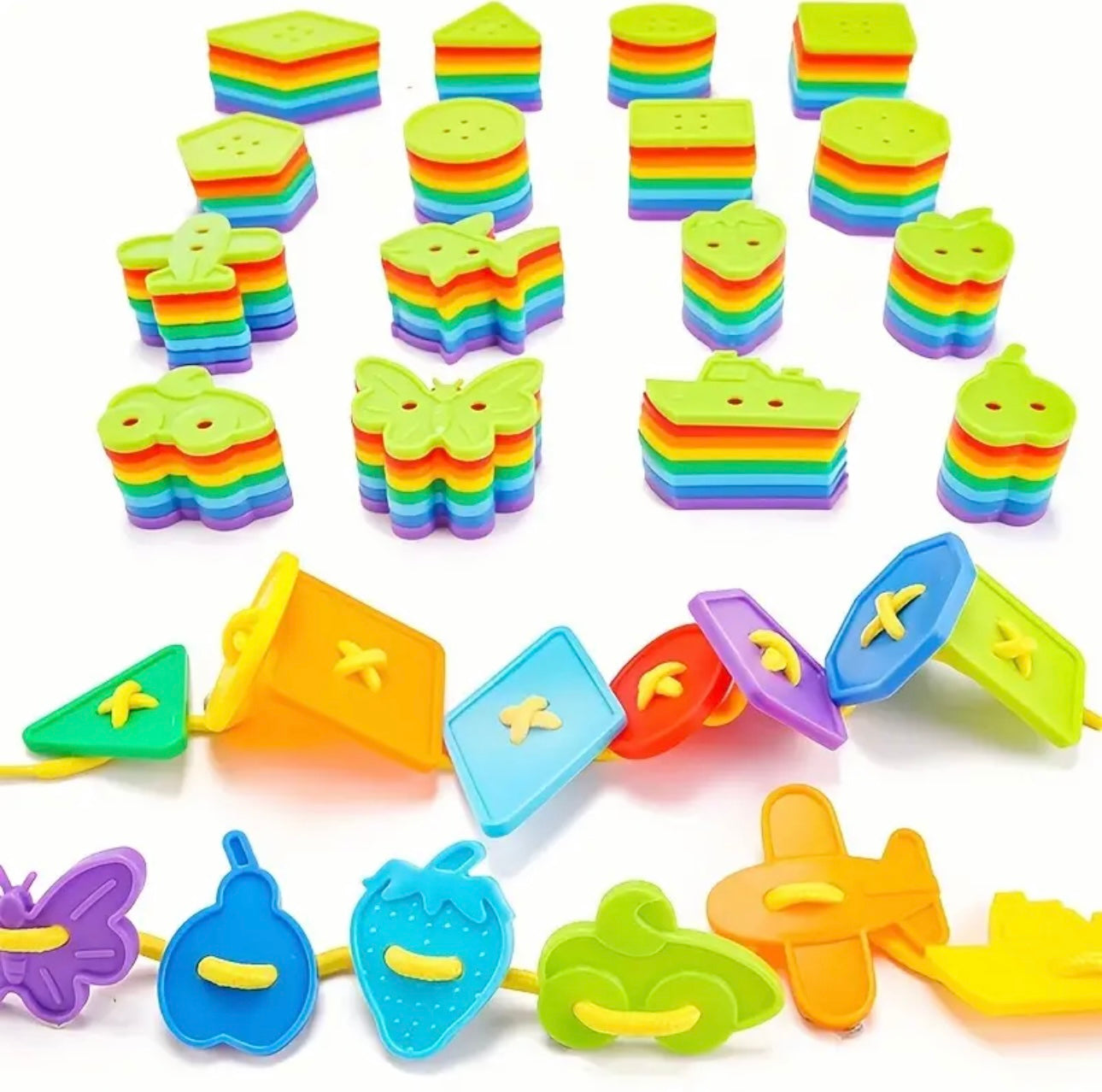 35 unids/set de cuerdas geométricas para bebés, botones geométricos educativos tempranos, bloques de construcción de cuerdas, juguetes educativos para enhebrar, para iluminación de jardín de infantes con cuentas de colores