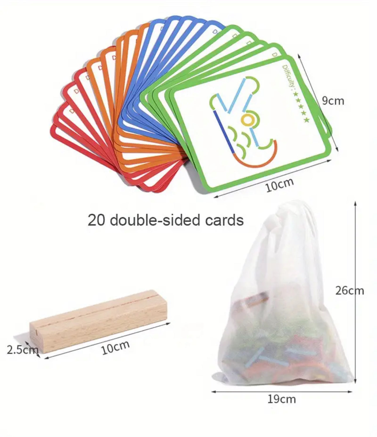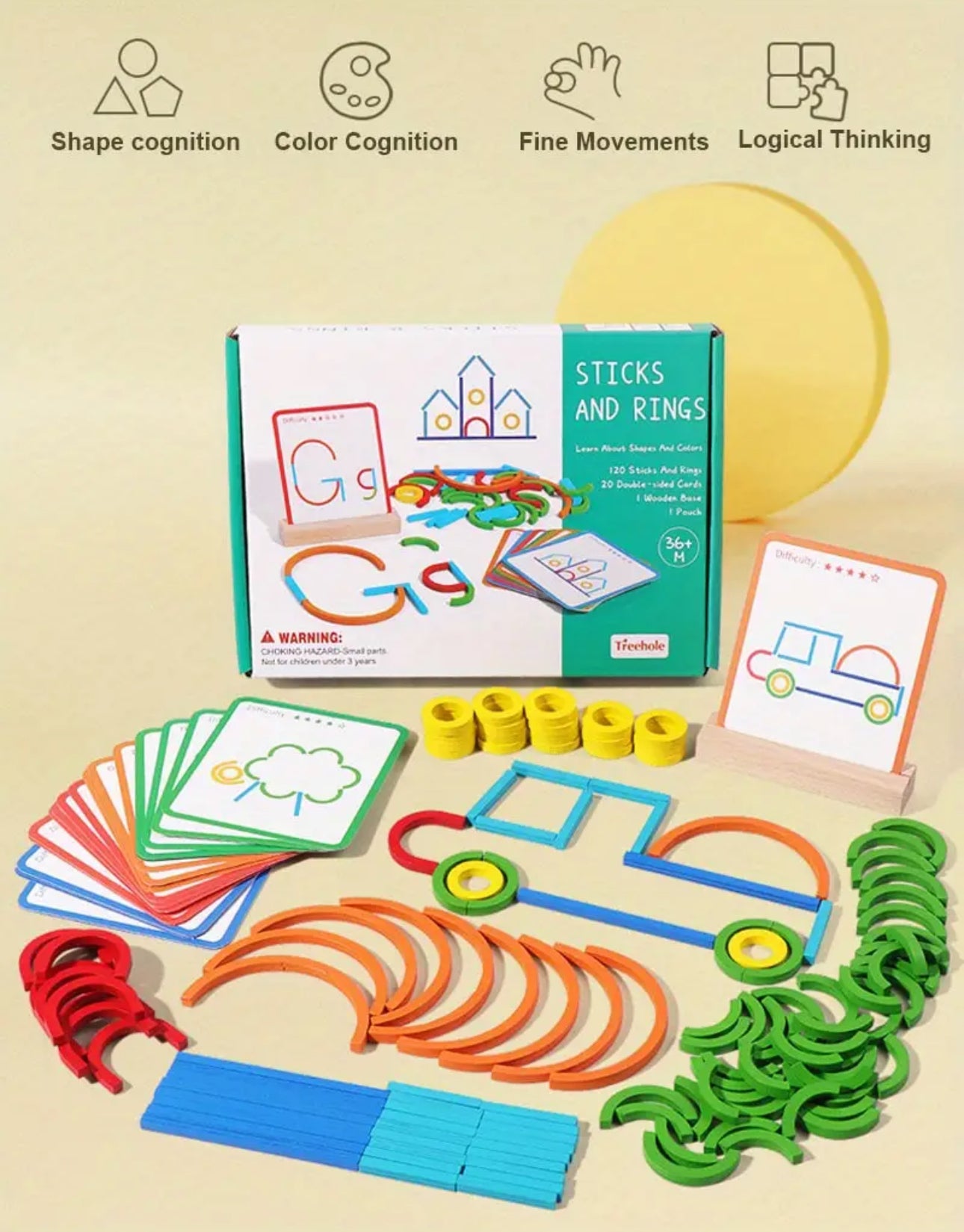 Wooden IQ-Pushing Puzzle Game - Challenging Sticks & Rings Toy - Stimulates Cognitive Growth, Develops Fine Motor Skills - Durable Eco-Friendly Building Blocks for Kids box3and noboxbox6